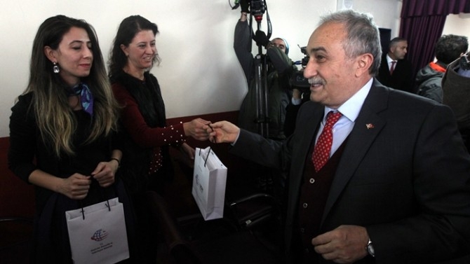 Bakan Fakıbaba, temaslarda bulunmak üzere geldiği Kars'ta 'Tarım Sektörü Değerlendirme Toplantısı'nda yaptığı konuşmada, aile olarak gördükleri çiftçi kardeşleriyle bir araya gelmekten mutluluk duyduğunu belirtti.