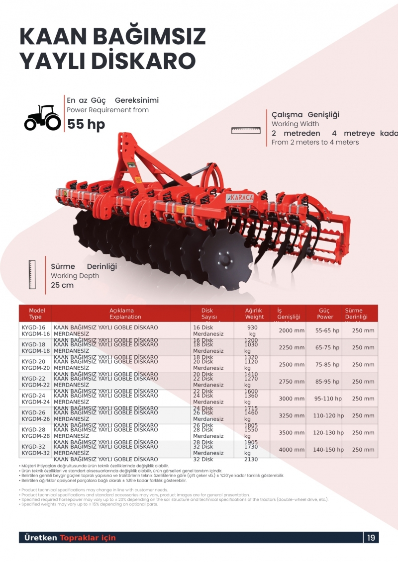 Karaca KYGD28 Kaan Bağımsız Yaylı Diskaro 28 Diskli