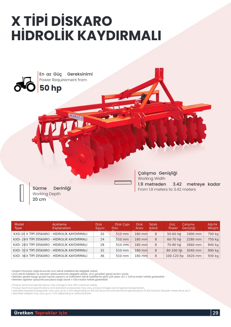Karaca KXD24 X Tipi Diskaro Hidrolik Kaydırmalı 24 Diskli