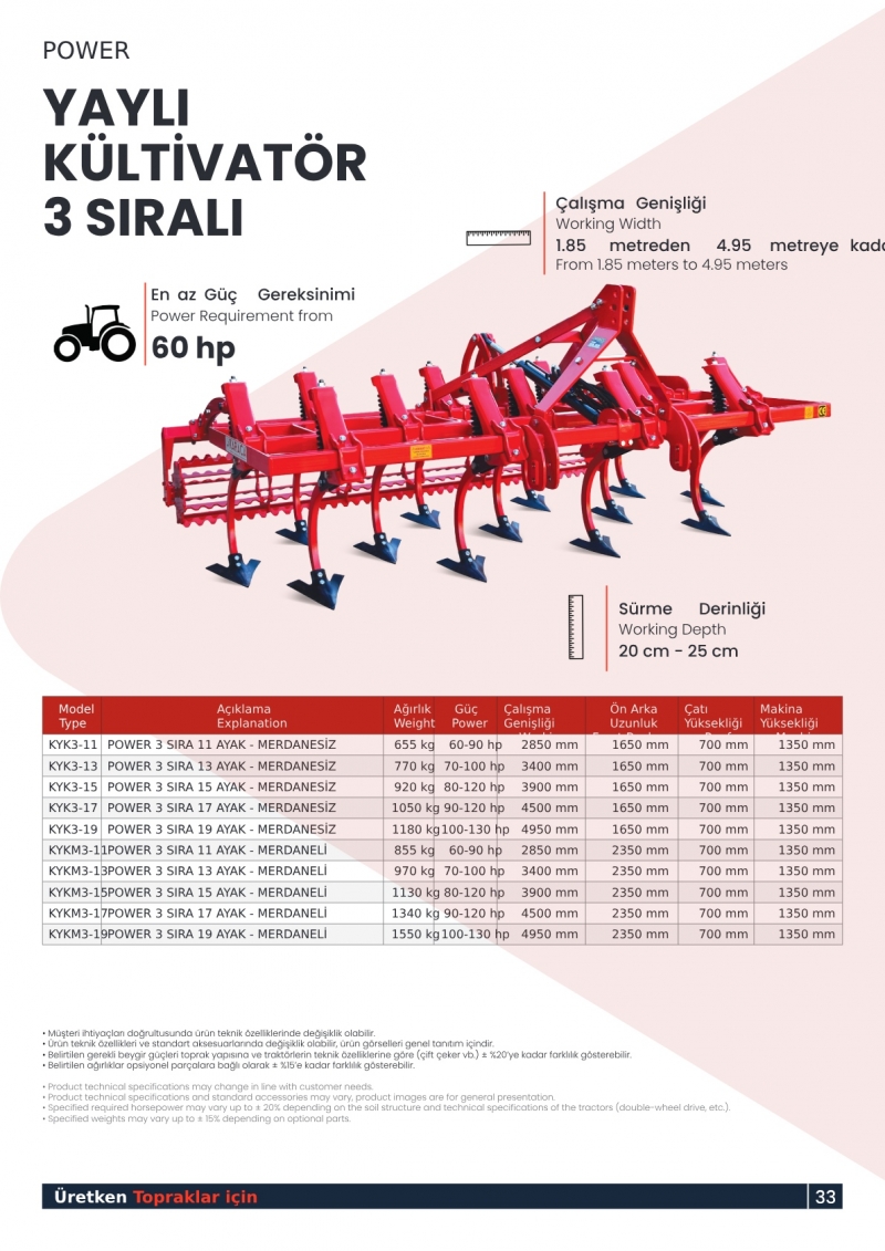 Karaca KYK3-15 Power Yaylı Kültivatör 3 Sıralı 15 Ayaklı