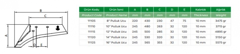 11125 Alpler - Aydın Pulluk 16 inç Pulluk Ucu Bıçağı