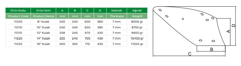11215 Alpler - Aydın Pulluk 12 inç Pulluk Kulağı