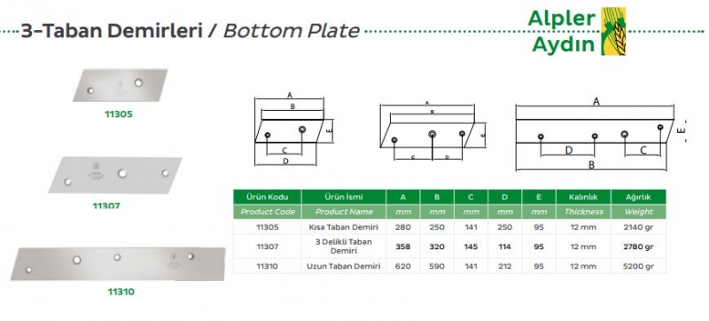 11307 Alpler - Aydın Pulluk 3 Delikli Taban Demiri
