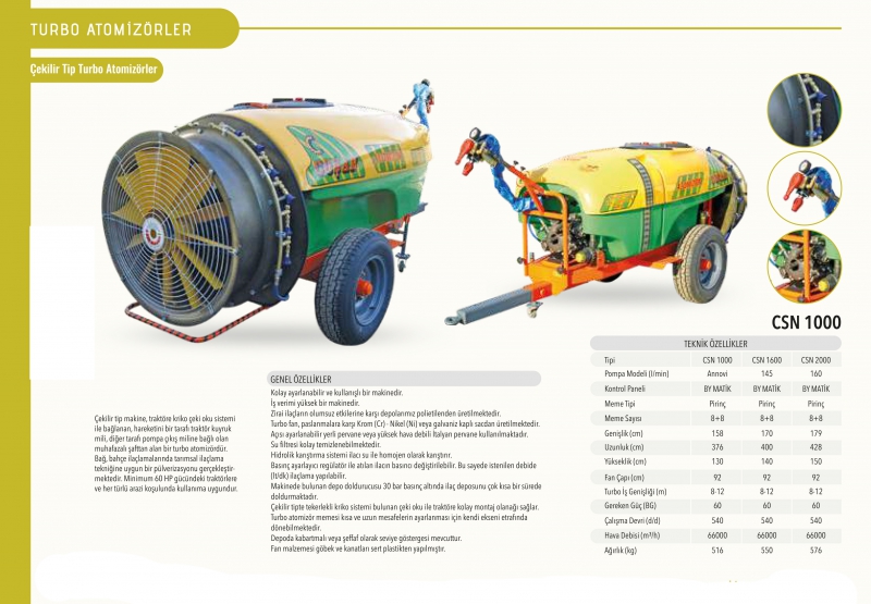 Coşan 1000 lt Turbo Fanlı Çekilir Tip İlaçlama Makinası Atomizer