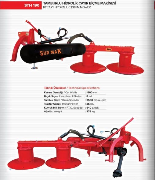 Sürmak STH 190 - Tamburlu Hidrolik Çayır Biçme Makinası
